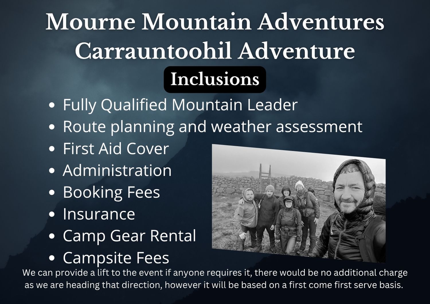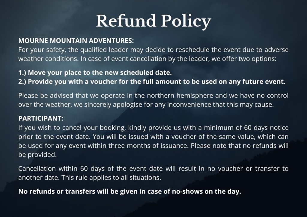 18apr9:00 am3:00 pmSold Out!CRUISE LINE Private Booking Siobhan9.00am Meelmore Lodge, The Mournes