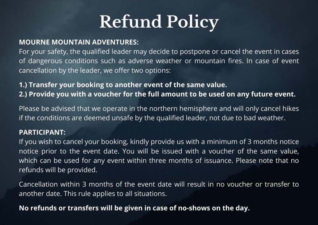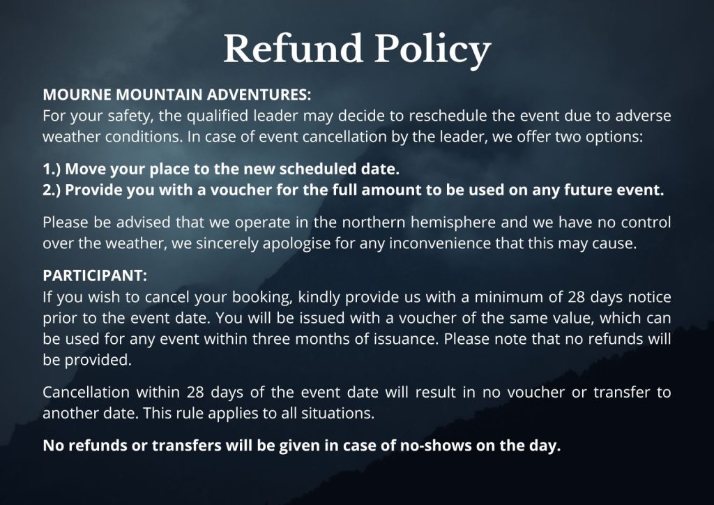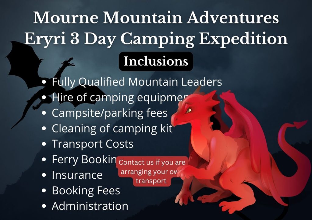 Cost for the full three days is ยฃ595pp, which includes ferry, kit rental, kit cleaning, campsite fees, booking fees, insurance, photos and an experience qualified mountain leader. It does not include food or drink.Please note that this does not include food, use code CAR170 if you are using your own transport for a ยฃ170 discount on cost.