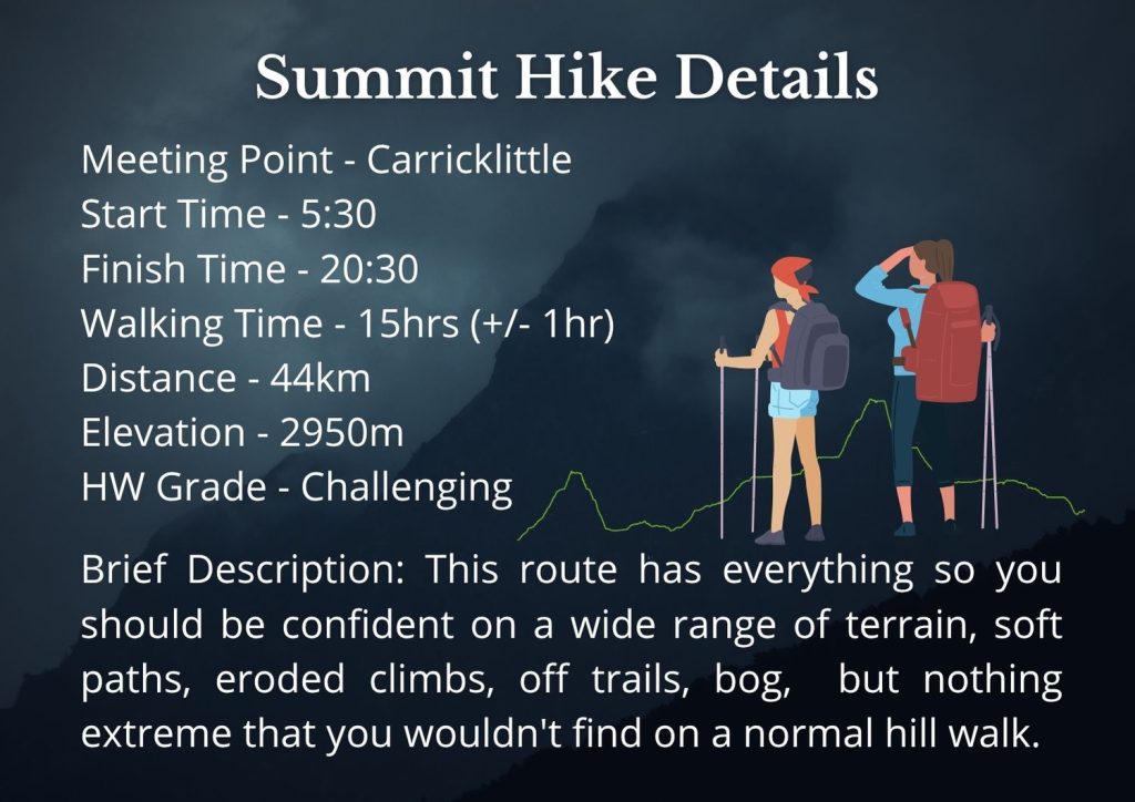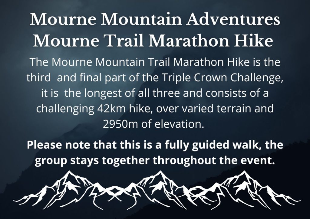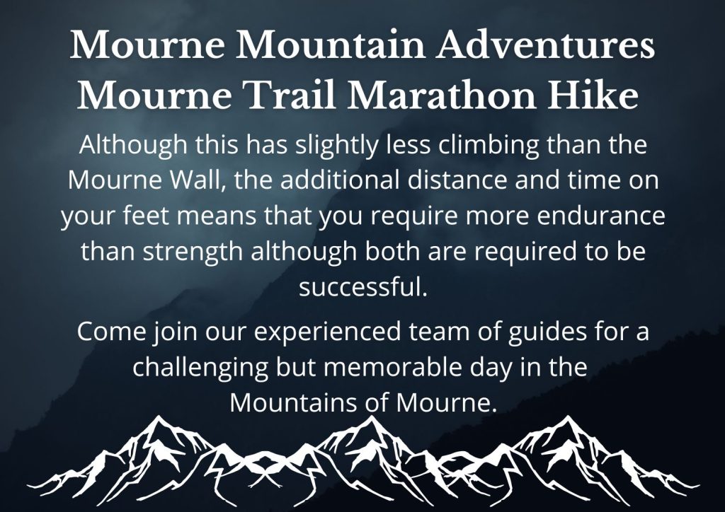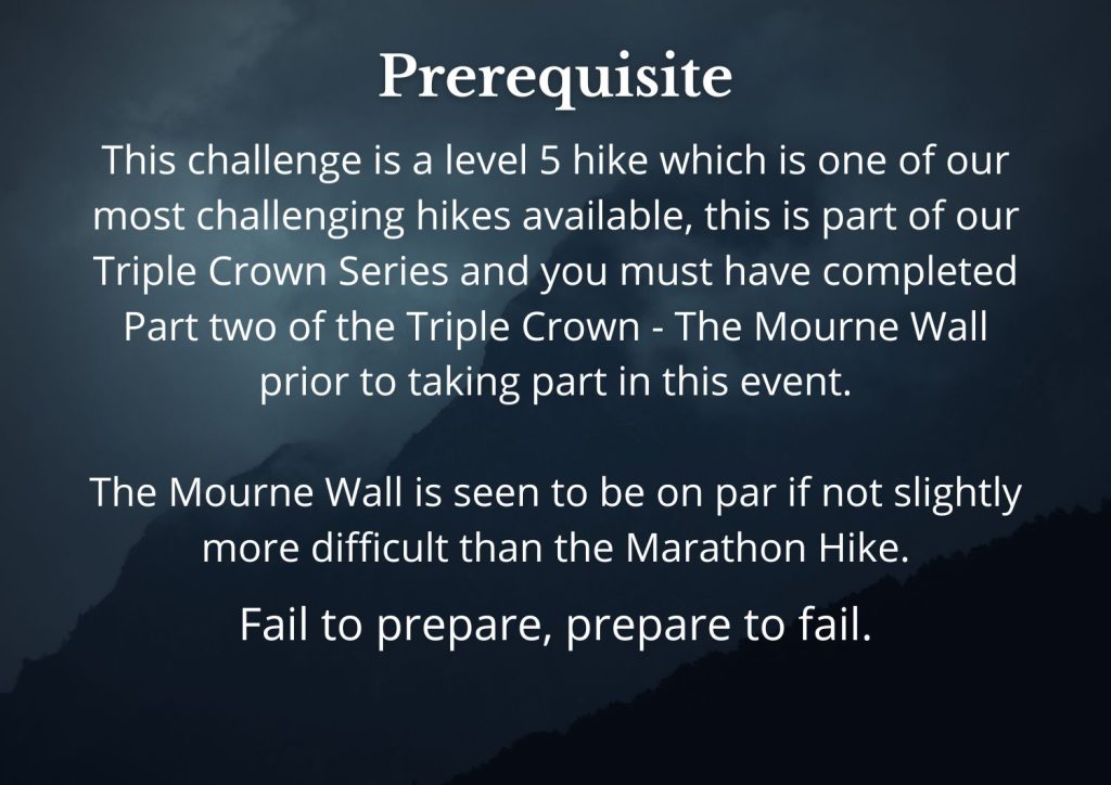 Please submit an inquiry before placing your booking and we will help to confirm if this challenge is the right challenge for you, if you have previously completed the Mourne Wall, or the Seven Sevens with Mourne Mountain Adventures then you will qualify for this event.
