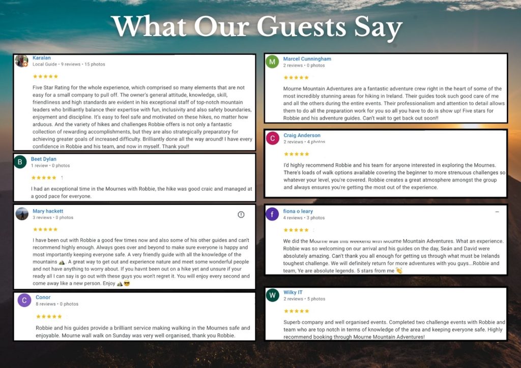 Guided Mountain Adventures, Guided Hikes, and Camping Expeditions in the majestic peaks and varied trails of the Mourne Mountains and Ireland.